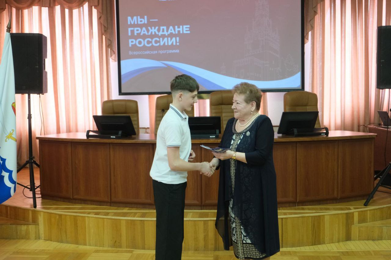 Сегодня в администрации города прошла торжественная церемония вручения паспортов гражданина Российской Федерации. Их получили 14-летние школьники, которые активно проявили себя в науке, спорте, творчестве, общественной деятельности.