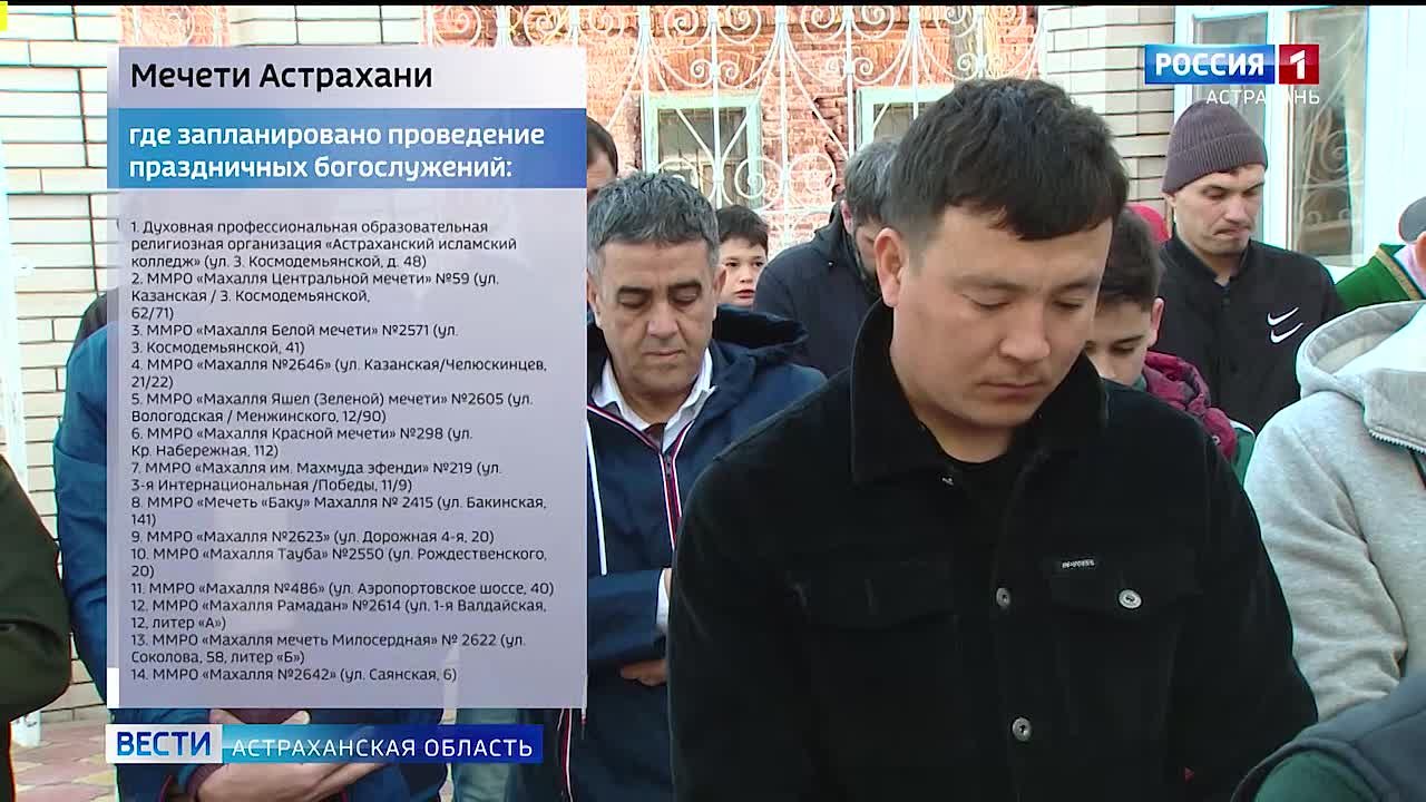 Праздник в честь окончания поста в месяц Рамадан. В этот день в Астрахани пройдут торжественные службы. Начало в 7:30 утра. Подробнее об этом на нашем сайте.