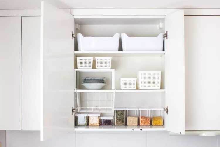 Сортируйте вещи по категориям использования. Объедините крупы, специи, принадлежности для запекания и удобные инструменты, чтобы во время готовки не тратить время на поиски.