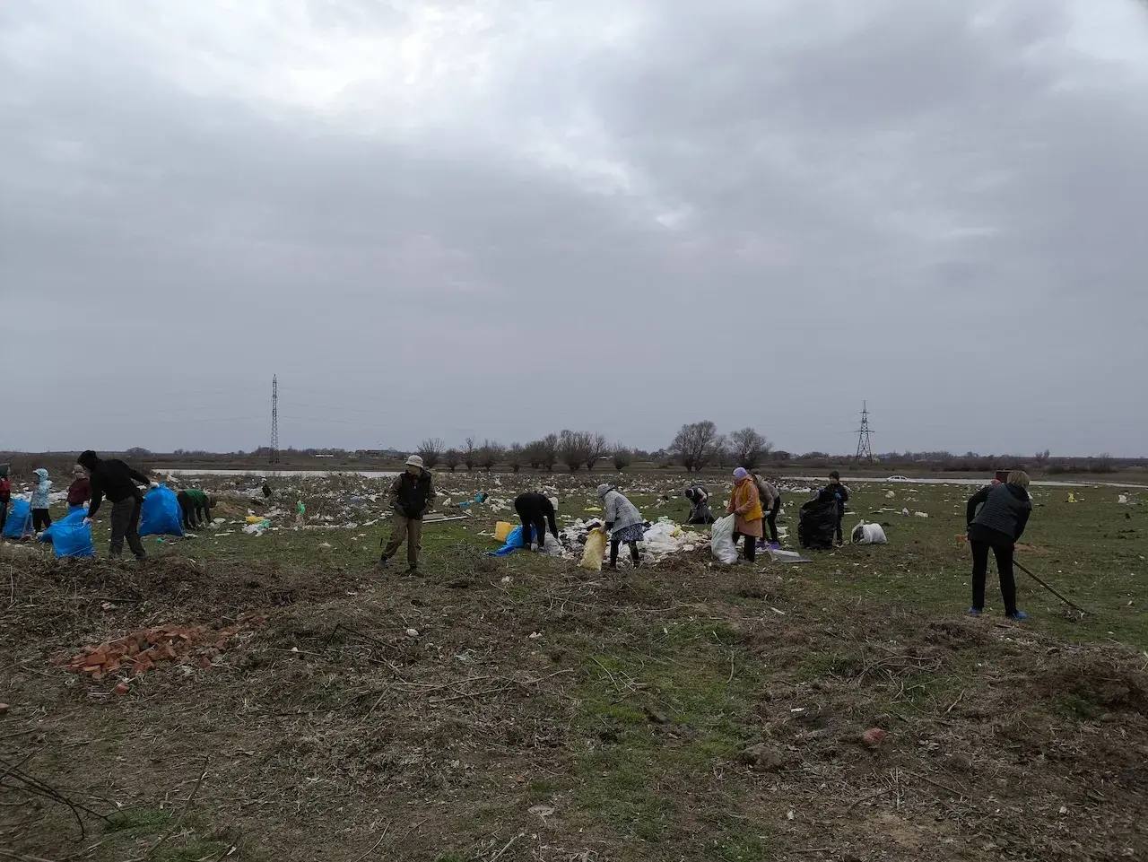 После этого начался субботник. Люди с энтузиазмом убирали территорию: собирали ветки, складывали их в кучи и упаковывали мусор в мешки. За три часа участники собрали более ста мешков отходов. Сотрудники астраханского филиала «ЭкоЦентра» тоже помогали.