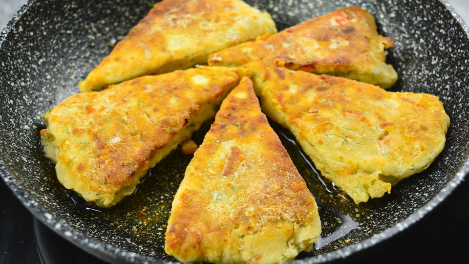 Первым шагом нарезается тыква и помещается в сотейник или глубокую сковороду. Залить немного воды и варить 2-3 минуты после закипания. После чего нужно слить воду и взбить тыкву до получения однородной массы.