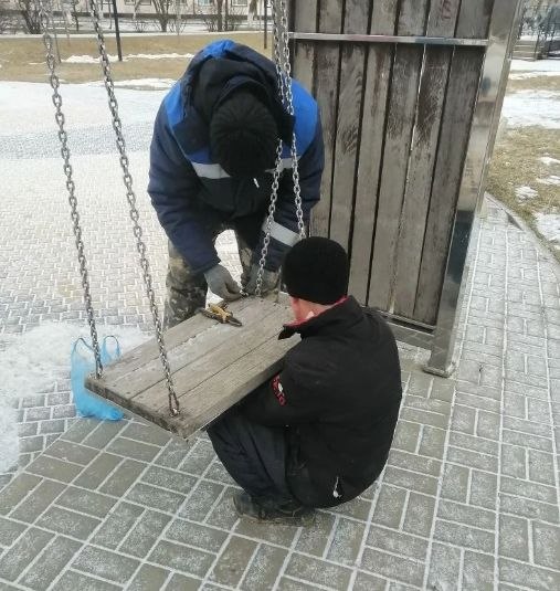 В целях обеспечения безопасности и продления срока службы качелей в центральном парке и на пешеходной зоне ул. Циолковского рабочие поменяли изношенные карабины, затягивают ослабленные болты, гайки и другие крепёжные элементы.