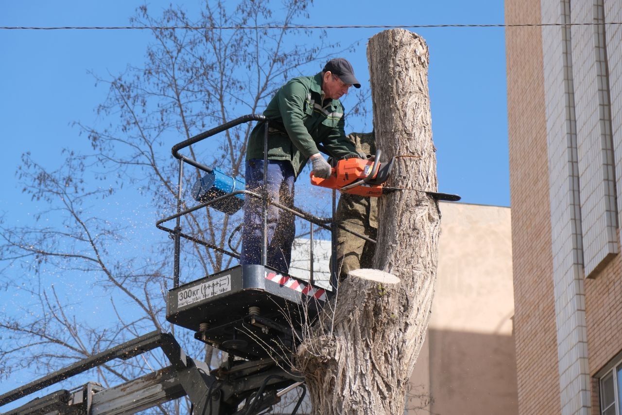 Сегодня специалисты муниципального предприятия «Зеленый город» приступили к санитарной обрезке деревьев и сносу старых трухлявых и аварийных.