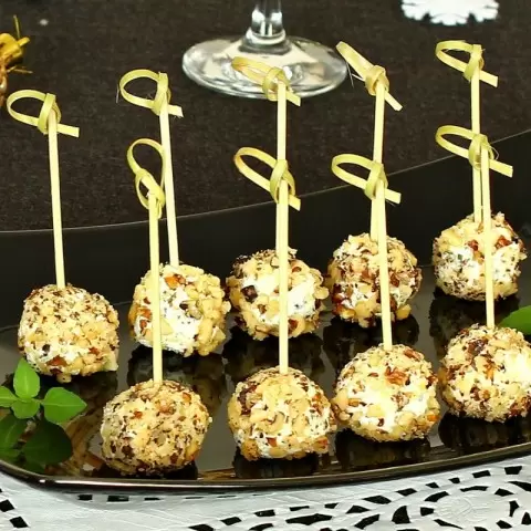Охлаждение и подача. Шарики выкладываются на тарелку и ставятся в холодильник минимум на 30 минут. Это поможет им закрепить форму и улучшить вкус. Прежде чем подавать на стол, в каждый шарик можно вставить шпажку или зубочистку для удобства.