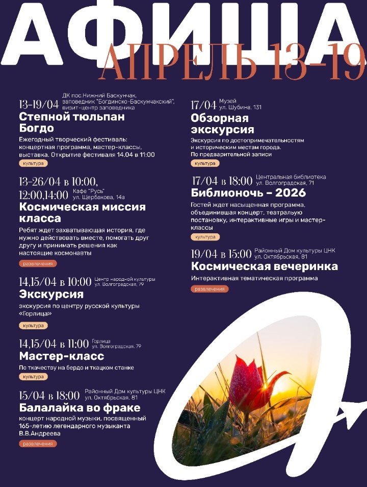 Собрали для вас самые интересные события с 13 по 19 апреля. Выбирайте, куда отправиться!
