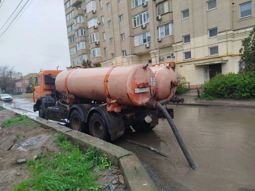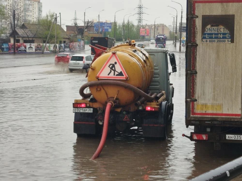В Астрахани коммунальная техника откачивает дождевую воду