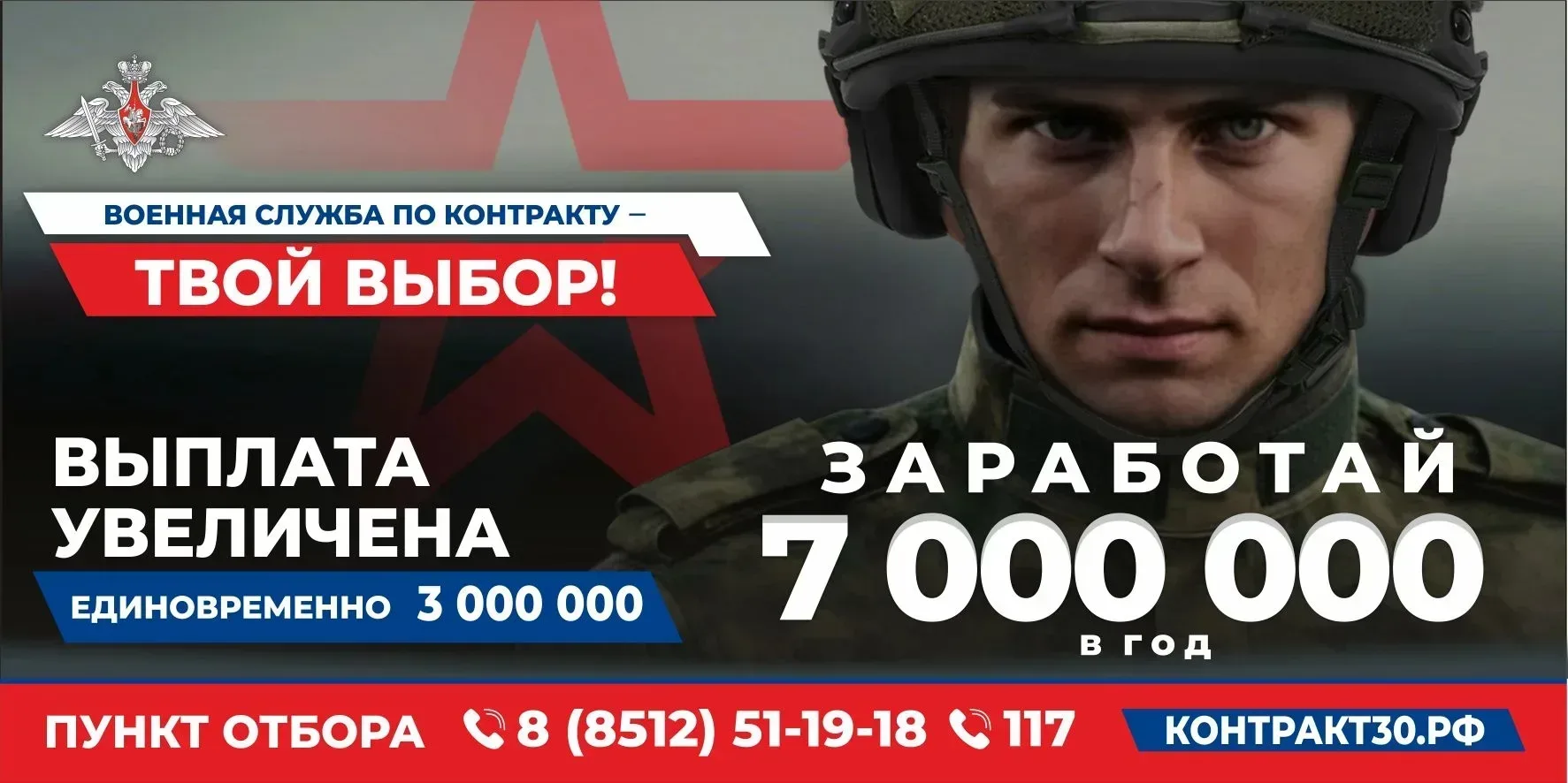 В Астраханской области выплата при заключении контракта с МО увеличена суммарно до 3 000 000 рублей