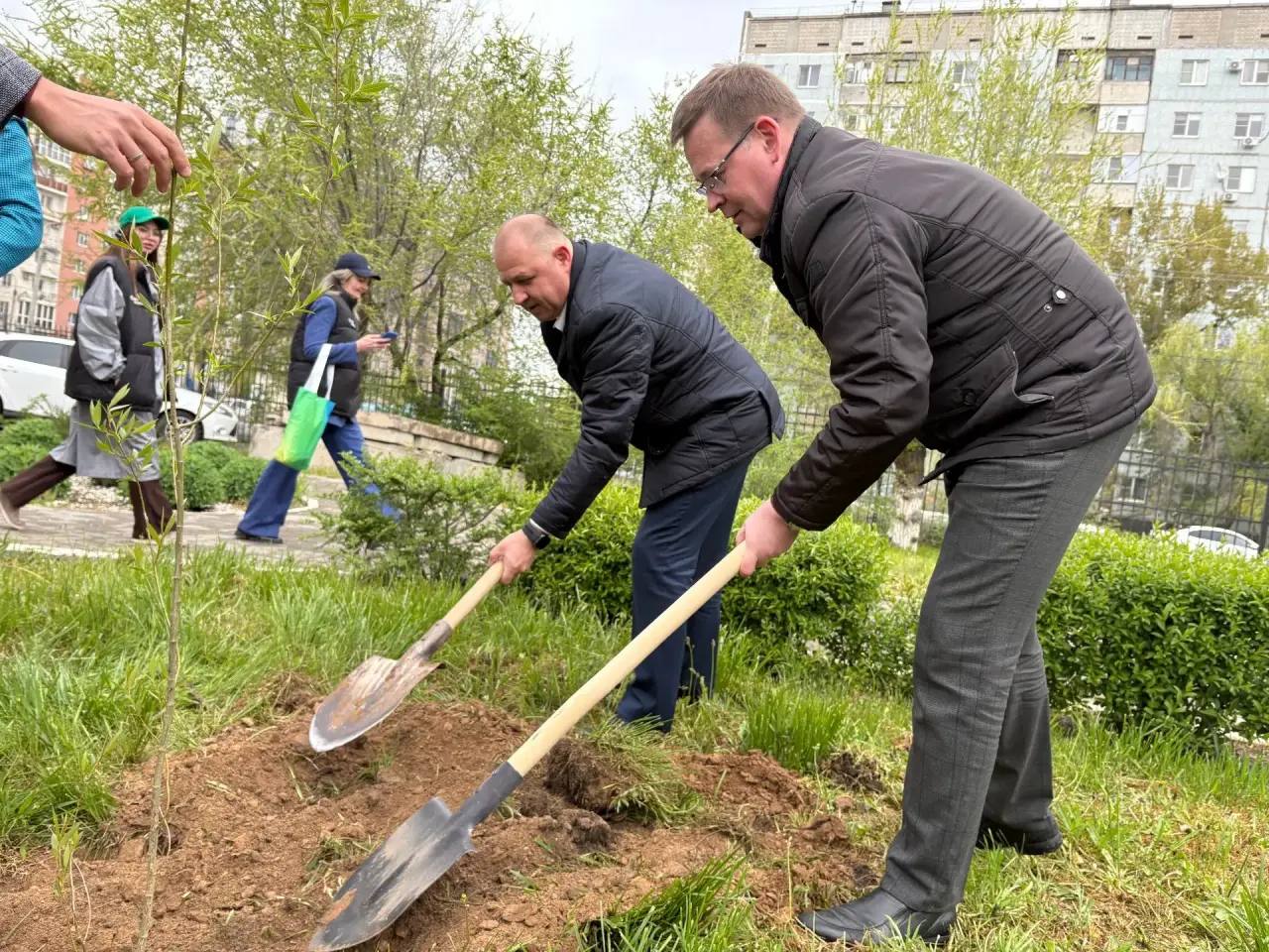 В высадке деревьев также приняли участие ректор Астраханского ГМУ Сергей Поройский и Генеральный директор ТФ «ВТС-экспедирование» Искандер Кугушев и представители Молодёжного правительства Астраханской области под руководством председателя — врача-патоморфолога онкодиспансера Александра Процко.