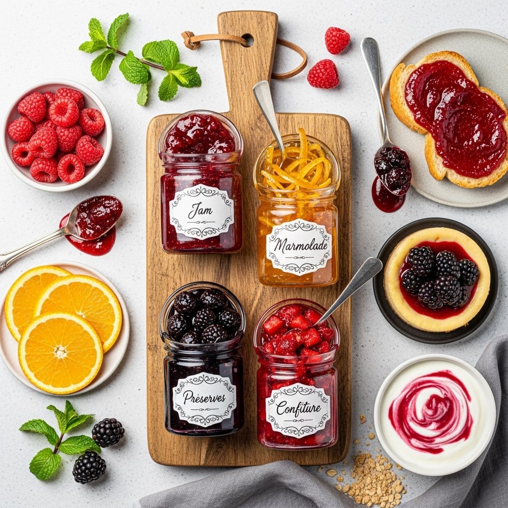 - Для десертов: джем и конфитюр хорошо подходят для украшений и добавления сладости.